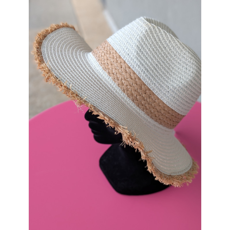 Chapeau d'été couleur crème et marron.