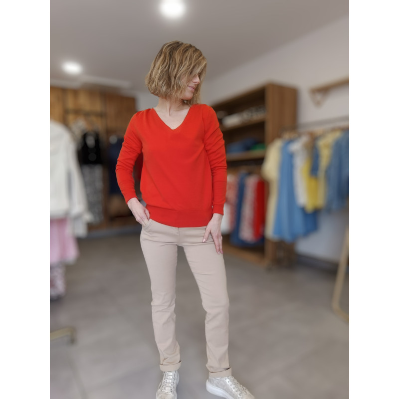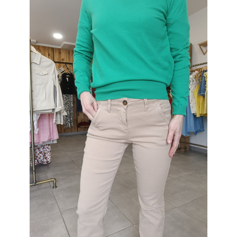 Pantalon en toile très agréable à porter, avec des poches passepoilées.