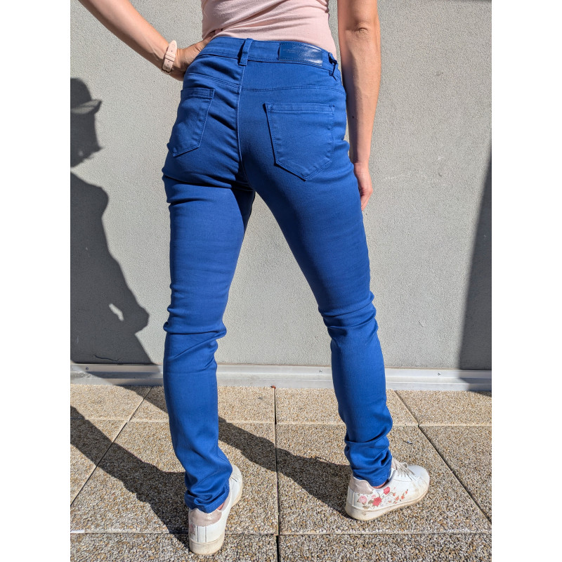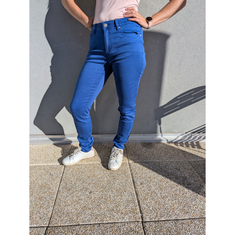 Jean slim taille haute en coton stretch, disponible en 3 coloris.