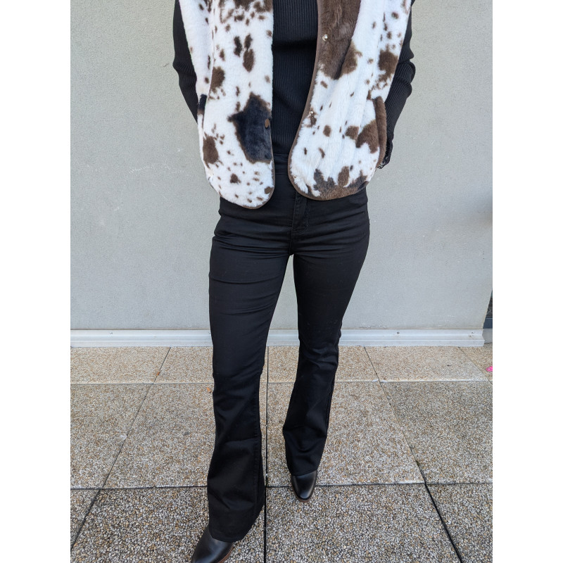 Optez pour l’élégance au quotidien avec ce pantalon noir chic à la coupe flare. Sa ligne légèrement évasée apporte une silhouette élancée et moderne, tandis que sa coupe confortable permet une liberté de mouvement optimale.