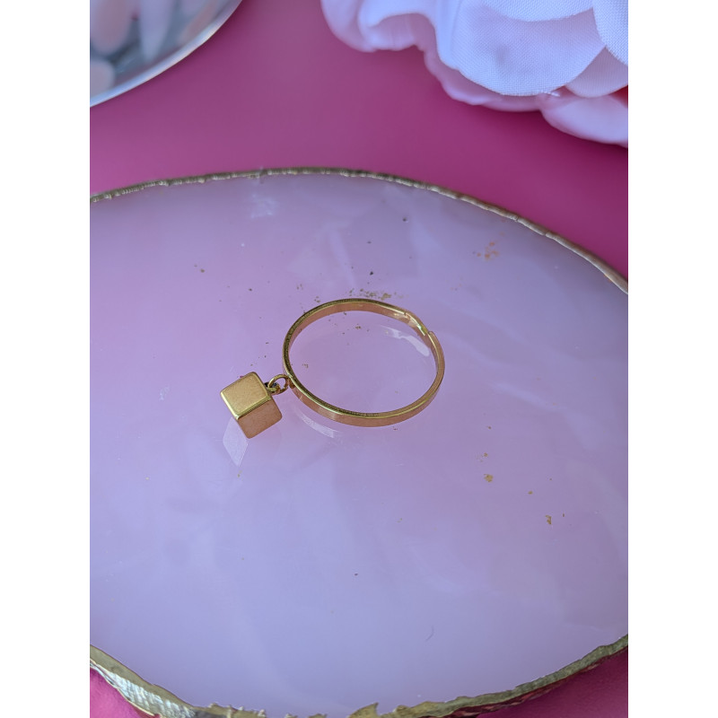 Bague fine avec un petit pendentif carré.