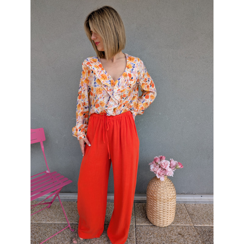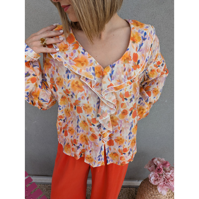 Blouse légère fleurie froufrou.