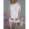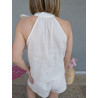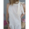 Top en coton qui se noue à l'épaule, motif fleurs en relief, discret et élégant.