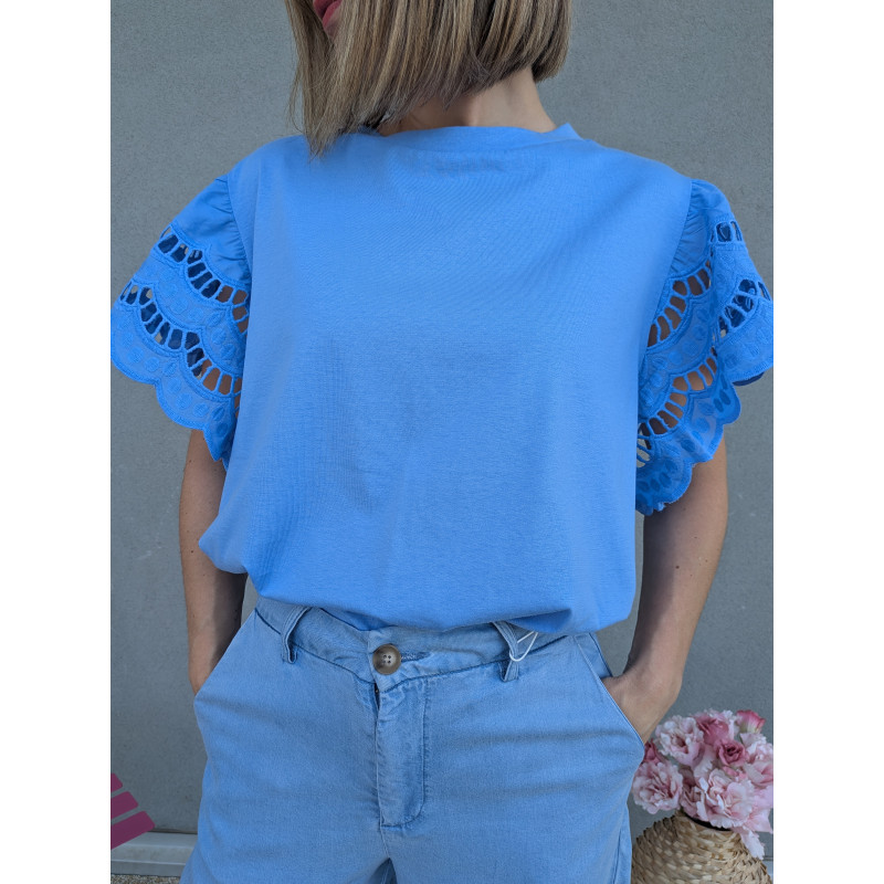Tee-shirt en coton avec des manches en broderies, qui donne un côté original et féminin.