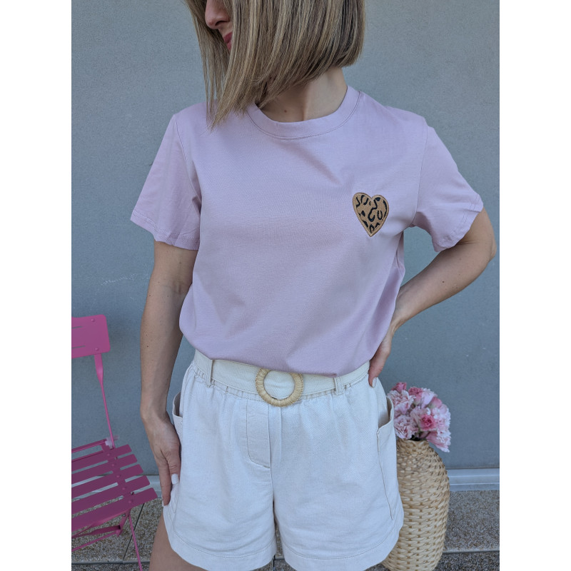 Coupe droite, avec cœur motif léopard pour un style casual.