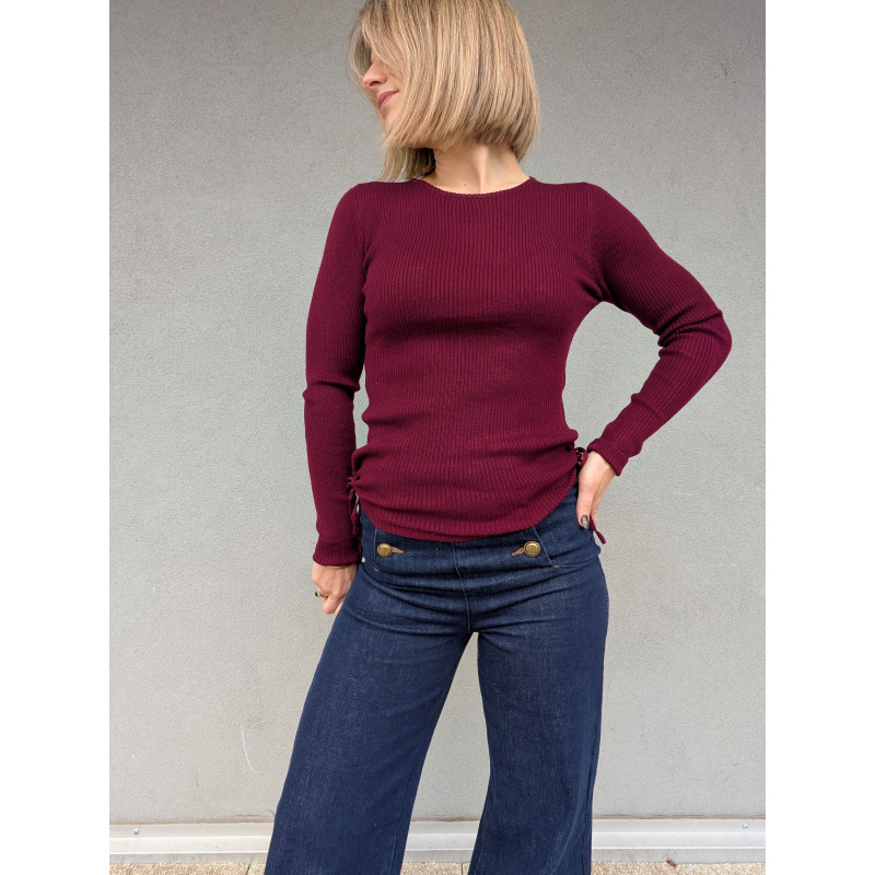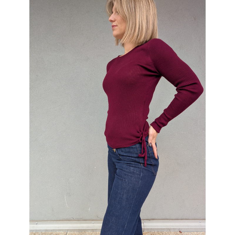 Un basique revisité avec style! Ce top côtelé bordeaux séduit par sa coupe ajustée qui met en valeur la silhouette tout en restant ultra confortable. Son tissu extensible et sa maille fine en font une pièce agréable à porter au quotidien.