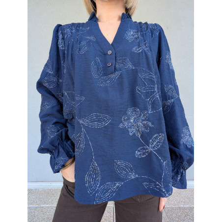 Son tissu fluide et léger met en valeur de magnifiques motifs floraux brodés ton sur ton, apportant une touche artisanale et raffinée à ton look.