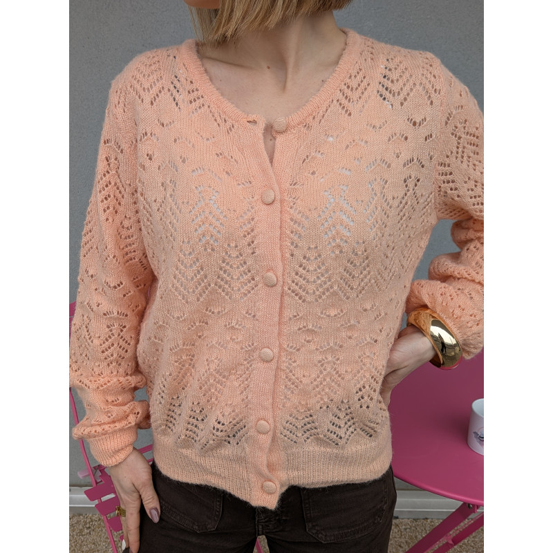 Ce gilet en maille ajourée séduit par son allure délicate et féminine. Confectionné dans une matière douce et légère, il offre un confort optimal tout en laissant respirer la peau. Son motif ajouré travaillé apporte une touche raffinée et élégante, idéale pour l'hiver et la mi-saison.