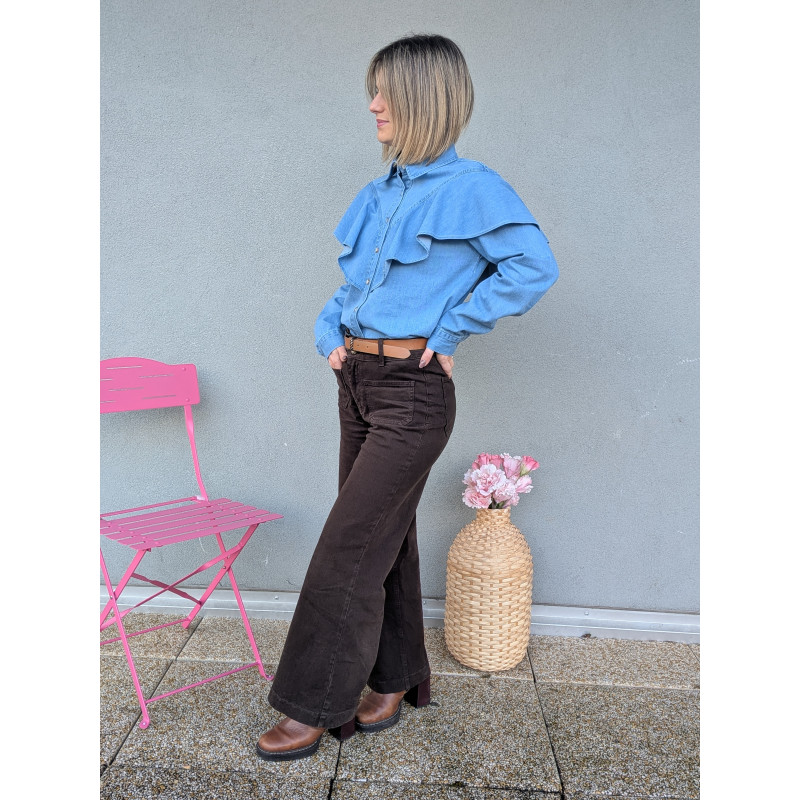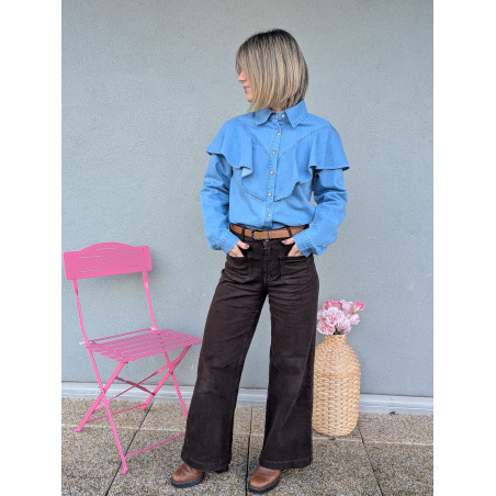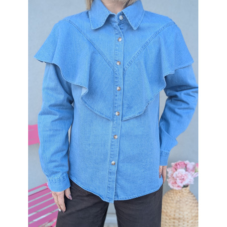Chemise en jean à volants.