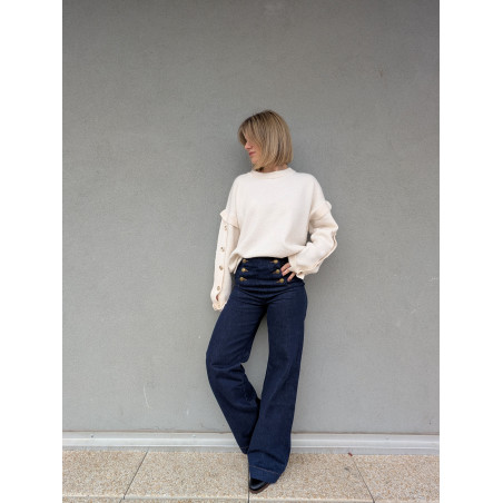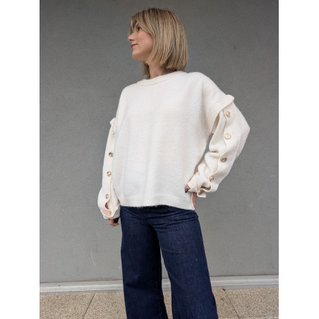 Ce pull blanc cassé incarne l'équilibre parfait entre élégance et douceur. confectionné dans une maille moelleuse, il vous assure chaleur et confort tout en sublimant votre silhouette.