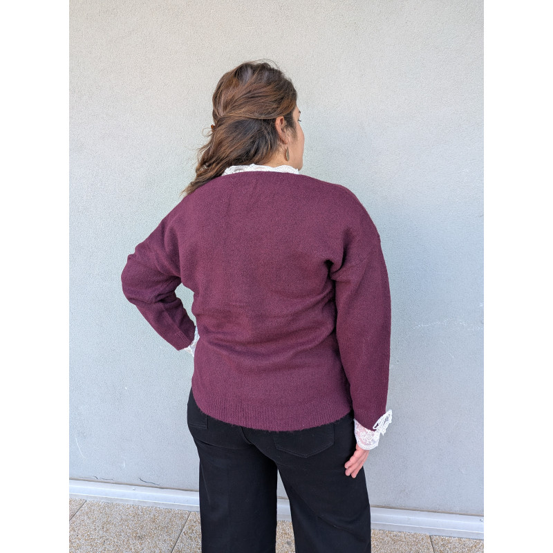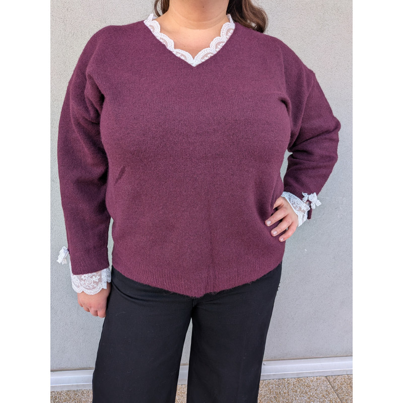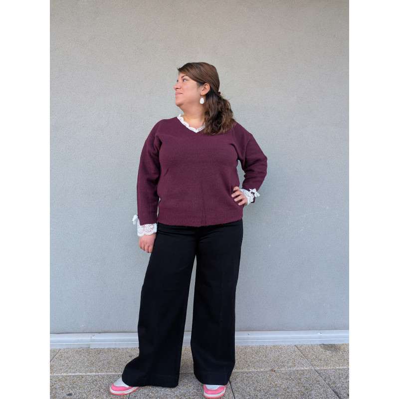 Laisse-toi séduire par l’élégance du pull bordeaux à dentelle, une pièce à la fois tendance et ultra-confortable. Son coloris profond met en valeur toutes les carnations, tandis que les finitions en dentelle délicate à l’encolure et aux manches apportent une touche de romantisme et de modernité.
