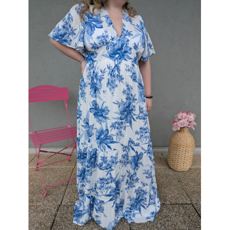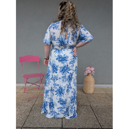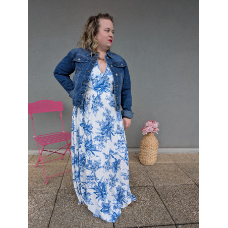 Laissez-vous séduire par cette robe longue fluide au charme intemporel, idéale pour sublimer vos journées ensoleillées comme vos soirées estivales. Son imprimé floral bleu délicat sur fond clair apporte une touche de fraîcheur et d’élégance, inspirée des motifs de porcelaine.