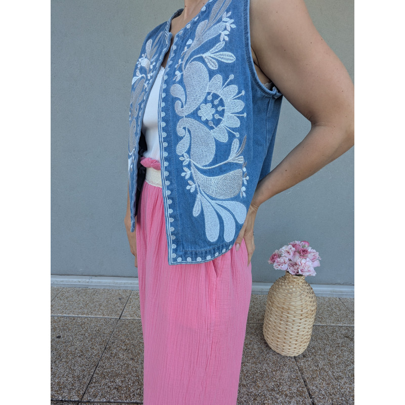 Ce gilet sans manche "effet jean" en coton, très tendance en ce moment, parfait pour compléter et finir vos looks.