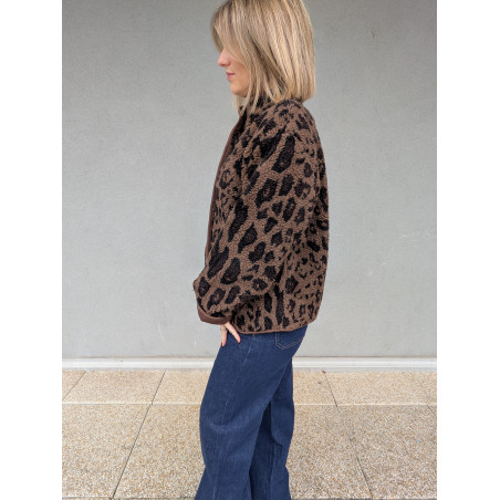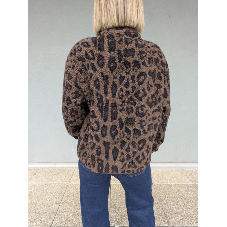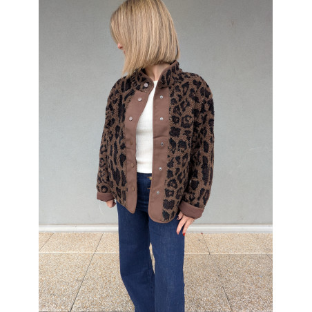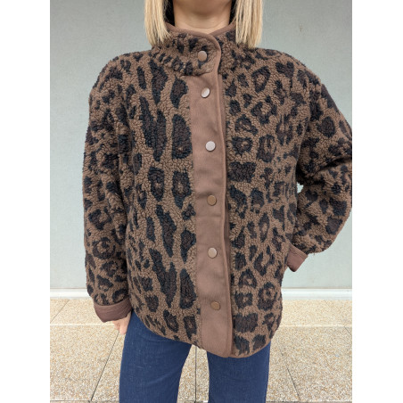 Adoptez le parfait mélange de confort et de caractère avec cette veste teddy imprimé léopard. son tissu effet moumoute ultra douce vous enveloppe de chaleur tout en ajoutant une touche audacieuse à votre look.