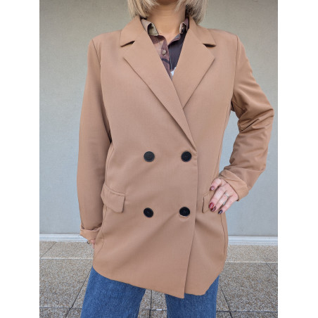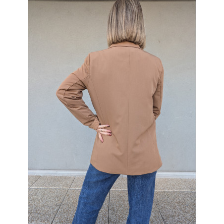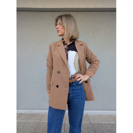Élégant, structuré et facile à porter, le blazer camel est la pièce maîtresse de toute garde-robe moderne. Sa coupe droite et légèrement oversize offre une allure chic sans effort, parfaite aussi bien pour le bureau que pour une sortie en ville.