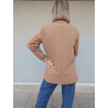 Confectionné dans un tissu fluide et confortable, il se distingue par ses boutons contrastants noirs et ses poches à rabat, apportant une touche sophistiquée à ton look. Le coloris camel chaud s’associe à merveille avec un jean pour un style casual chic ou avec un pantalon tailleur pour un ensemble plus formel.