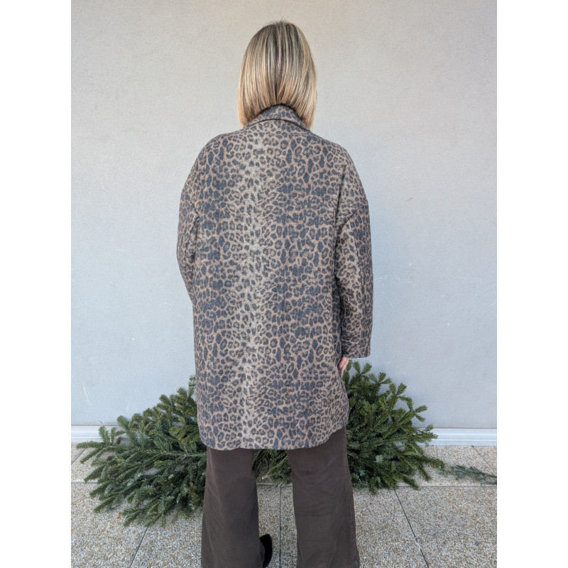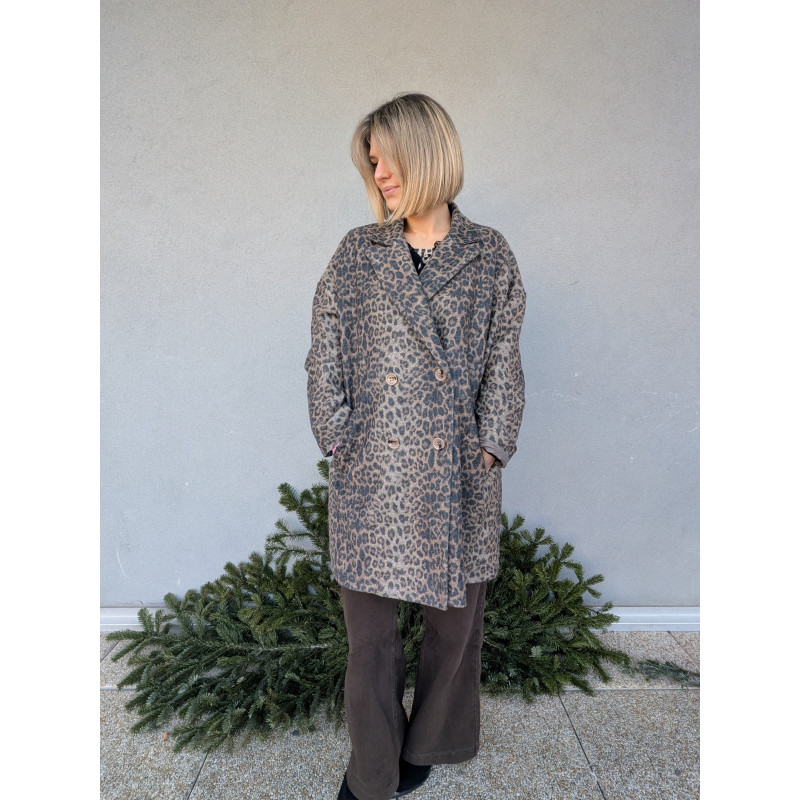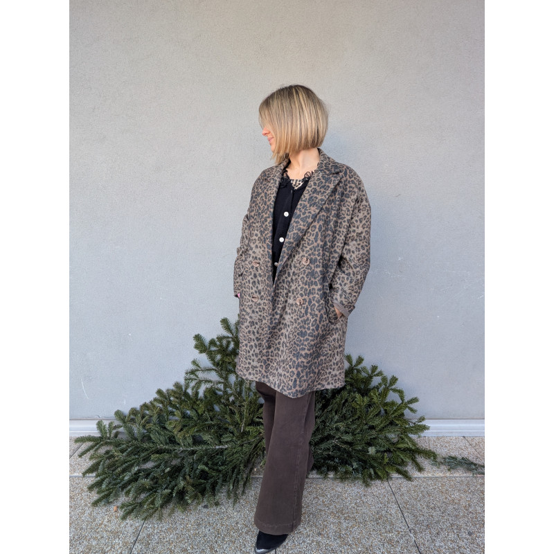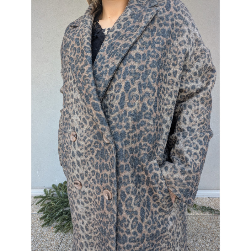 Affirmez votre style avec ce manteau long à imprimé léopard, une pièce forte qui allie élégance et modernité. Sa coupe droite légèrement oversize apporte une allure tendance tout en garantissant un confort optimal. Le col à revers structuré et la fermeture boutonnée sur le devant soulignent son esprit chic, parfait pour rehausser une tenue du quotidien comme un look plus habillé.