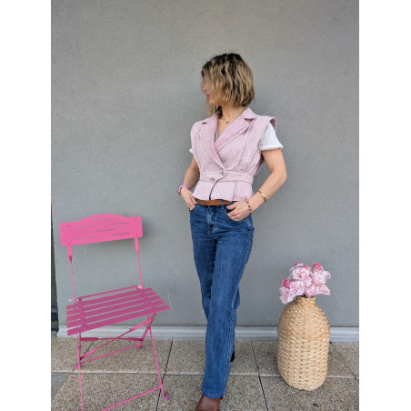 Facile à associer, elle se porte aussi bien avec un jean pour un look casual chic qu’avec une robe pour une tenue plus habillée. Sa couleur rose poudré apporte une note tendance et lumineuse à votre dressing.
